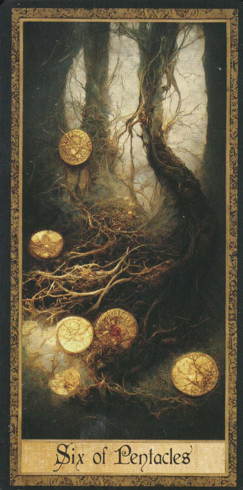 The deck was designed by Matt Hughes in 2017. The artist’s style also combines inspiration from the Pre-Raphaelite movement and the Symbolist movement. He has added 2 of his own Major Arcana cards to the deck, called ‘The well’ and ‘The artist.